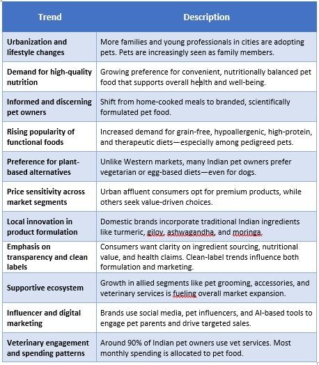 1. Increasing pet ownership: Urbanization and shifting lifestyles have driven a surge in pet adoption across India, especially in major cities like Delhi, Mumbai, Bengaluru, and Hyderabad. More families and young professionals are welcoming pets into their homes, contributing to higher demand for pet food products.